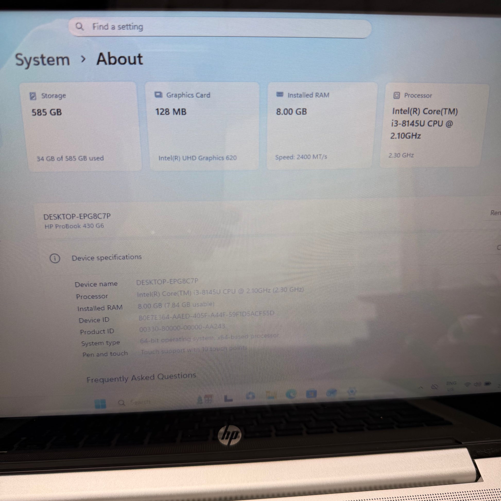 HP ProBook 430 G6 13" Laptop, 8GB RAM, i3 8th Gen, 500GB HDD